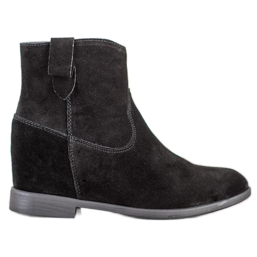 Pyöreän kärjen ja sisäänrakennetun pehmeän kantapään ansiosta nämä kengät tarjoavat maksimaalisen käyttömukavuuden. Korkea 8 cm kiila korostaa täydellisesti figuuria, ja sileä, synteettinen pohja tarjoaa vakautta jokaisessa vaiheessa. Saappaissa on myös eristys, mikä tekee niistä ihanteellisen valinnan syys-talvikauteen.
