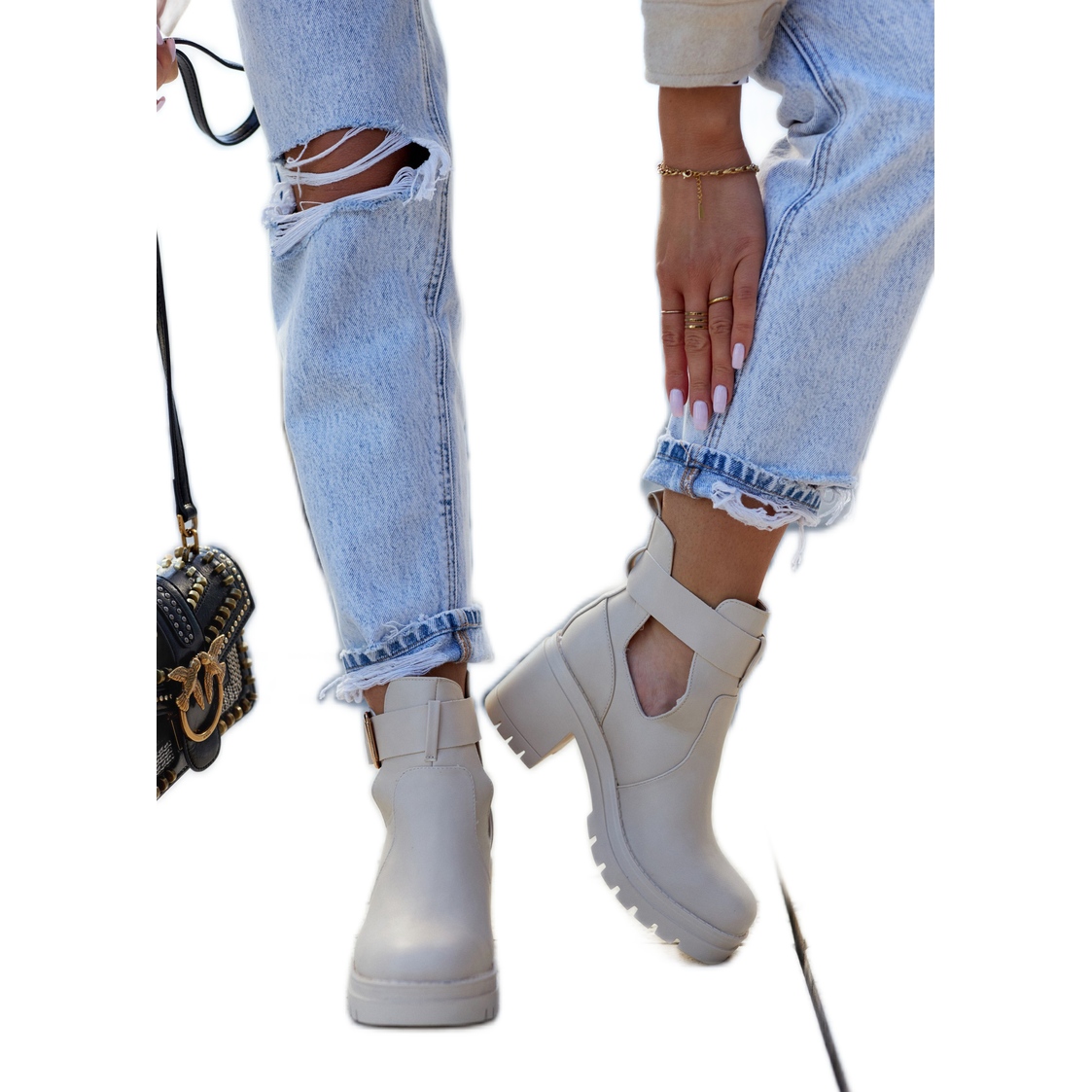 Yksityiskohdat: FE1 Nahkaiset saappaat leikattu vyö Beige Rosanne