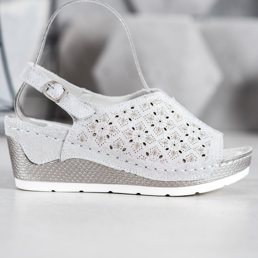 Korkealaatuisimmasta luonnonnahasta valmistetut sandaalit ovat poikkeuksellisen kestäviä ja mukavia käyttää. Innovatiivinen muotoilu harjakattoisilla yksityiskohdilla ja hienovaraisilla glittereillä saa jokaisesta niillä yhdistetystä asusta hienovaraisen hehkun. Kulutuspinnalla varustettu muovipohja tarjoaa riittävän pidon, mikä tekee niistä käytännöllisiä kesäkävelyihin.