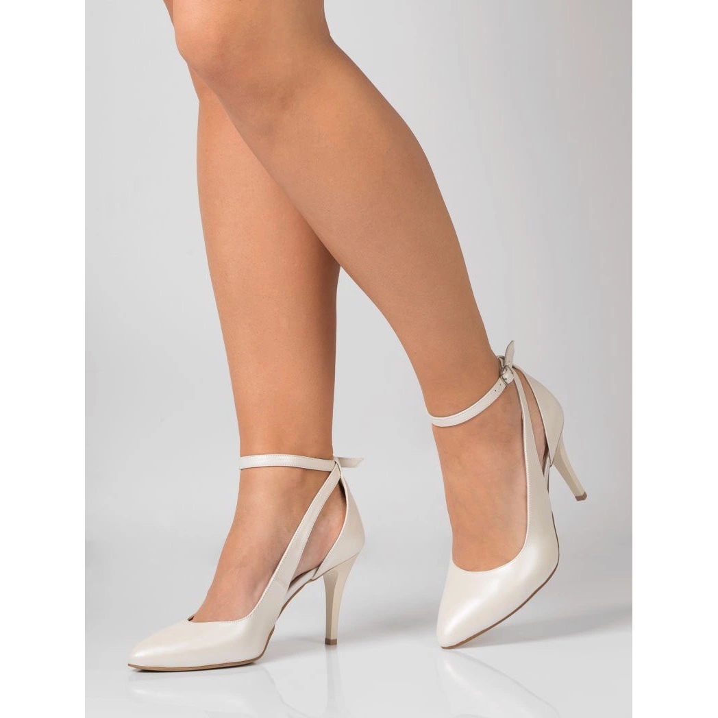 Yksityiskohdat: BUTDAM Nahkaiset tanssikorkokengät, joissa nilkkakiinnitys ja ecru-leikkaus Livia valkoinen
