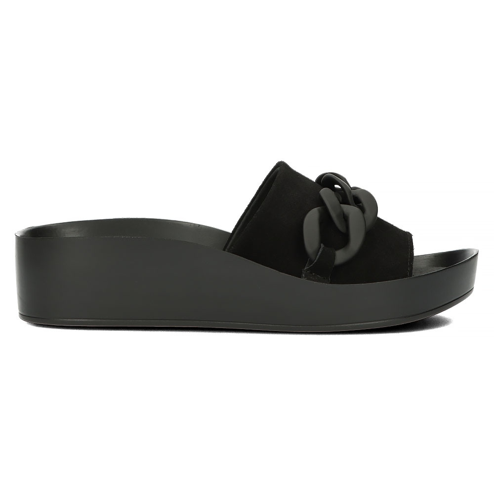 Varvastossoissa on 4,5 cm korkea synteettinen pohja, joka vaimentaa täydellisesti iskuja, ja varpaan pyöreä muoto takaa mukavuuden ja liikkumisvapauden. Ne erottuvat myös koristeellisesta ketjusta, joka antaa niille tyylikkään luonteen.