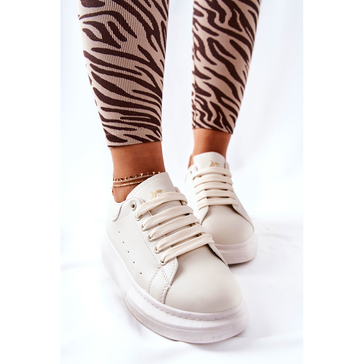 Beiget Lemmy-nahkaiset urheilujalkineet ovat ihanteellinen tarjous naisille, jotka haluavat yhdistää muodikkaan ilmeen arjen mukavuuteen ja mukavuuteen. Nämä korkealaatuisesta eko-nahasta valmistetut kengät erottuvat tyylikkäästä muotoilustaan ja käytännöllisestä ratkaisusta korkean alustan muodossa, 4 cm korkea, joka ei vain lisää muutaman senttimetrin lisäystä, vaan myös varmistaa vakauden kävellessä.