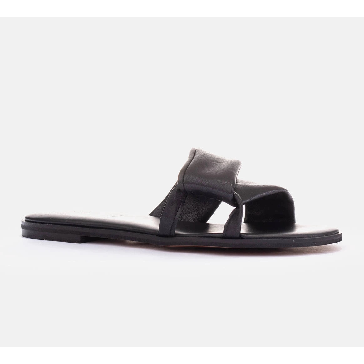 Yksityiskohdat: Marco Shoes Nahkaiset varvastossut tasaisessa pohjassa musta