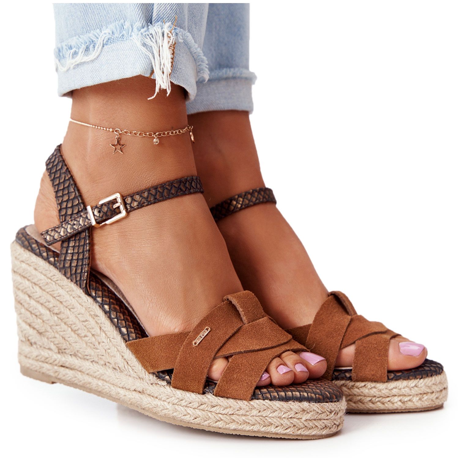 Big Star Nahkaiset Wedge -sandaalit Big Star HH274377 Ruskea