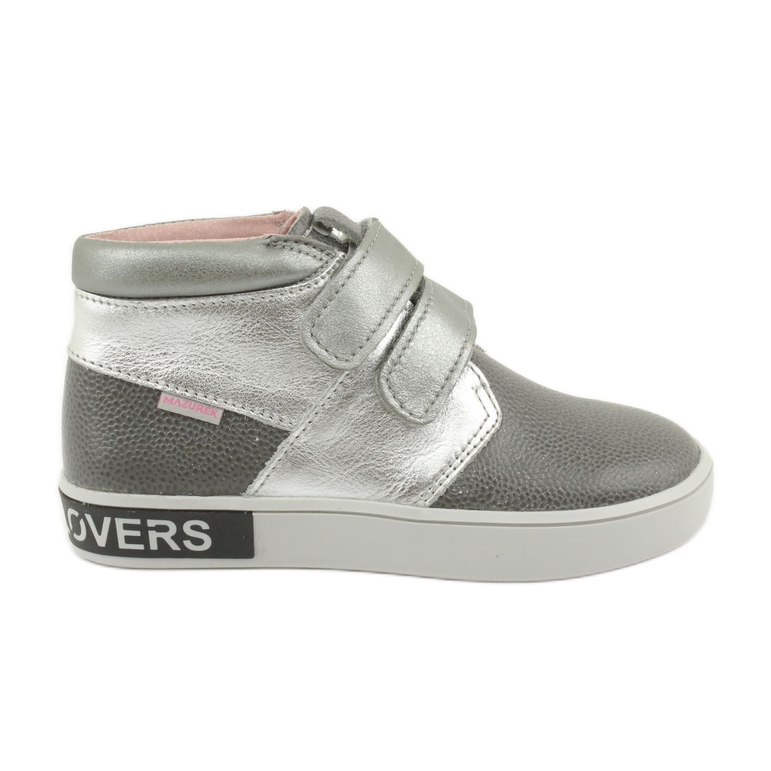 Mazurek Mazurek Nahkaisten lasten kengät tarranauhaan 1356 harmaa/hopea
