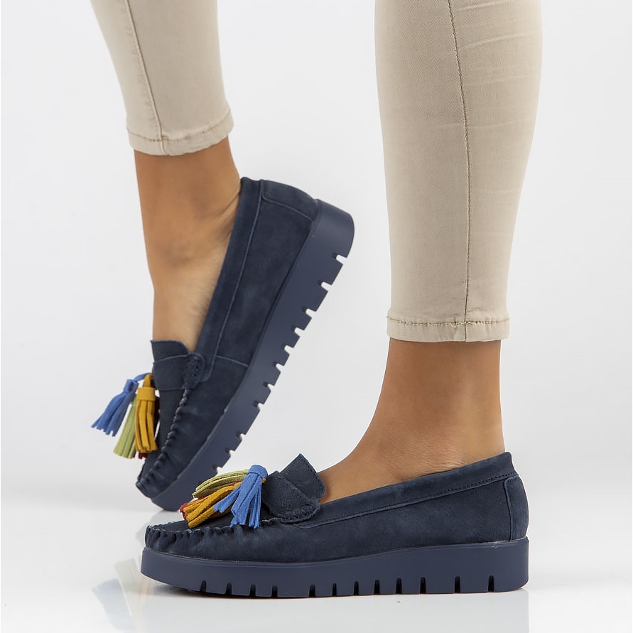Kengissä on pyöreä kärki, mikä takaa mukavuuden ja täydellisen istuvuuden. Slip-on-muotoilun ansiosta ne on helppo pukea ja riisua, ja luonnollinen nahkavuori pitää jalat mukavana, kun käytät niitä koko päivän. On syytä kiinnittää huomiota lisähapsuihin, jotka antavat kengille ainutlaatuisen luonteen.