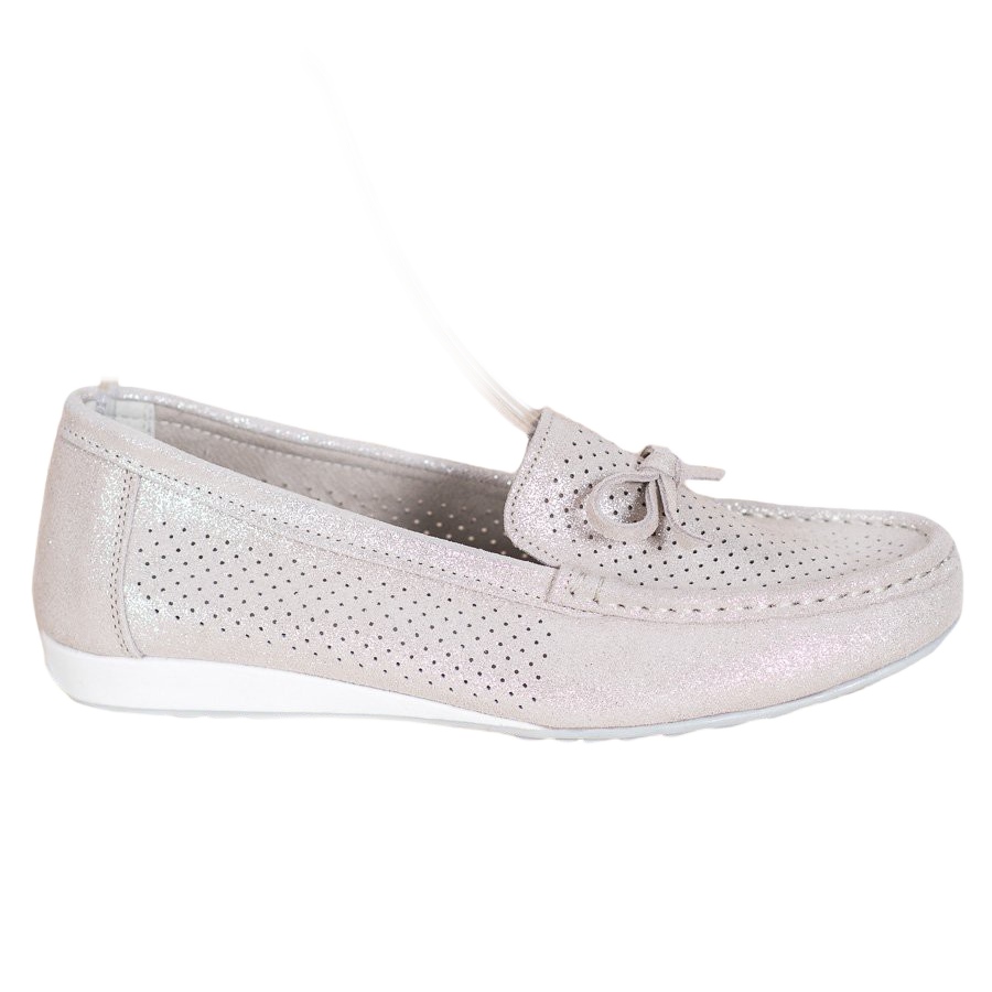 Löydä eleganssia ja mukavuutta kaikissa tilanteissa Goodinin naisten kenkien kanssa. Vaaleanruskeat nahkakengät, joissa on rusetti. Nämä ainutlaatuiset mokasiinit on valmistettu korkealaatuisesta luonnonnahasta, joka takaa paitsi kestävyyden, myös erinomaisen ilmanvaihdon ilmavan päällisen ansiosta, joka siirtää tehokkaasti pois ylimääräistä hikeä.