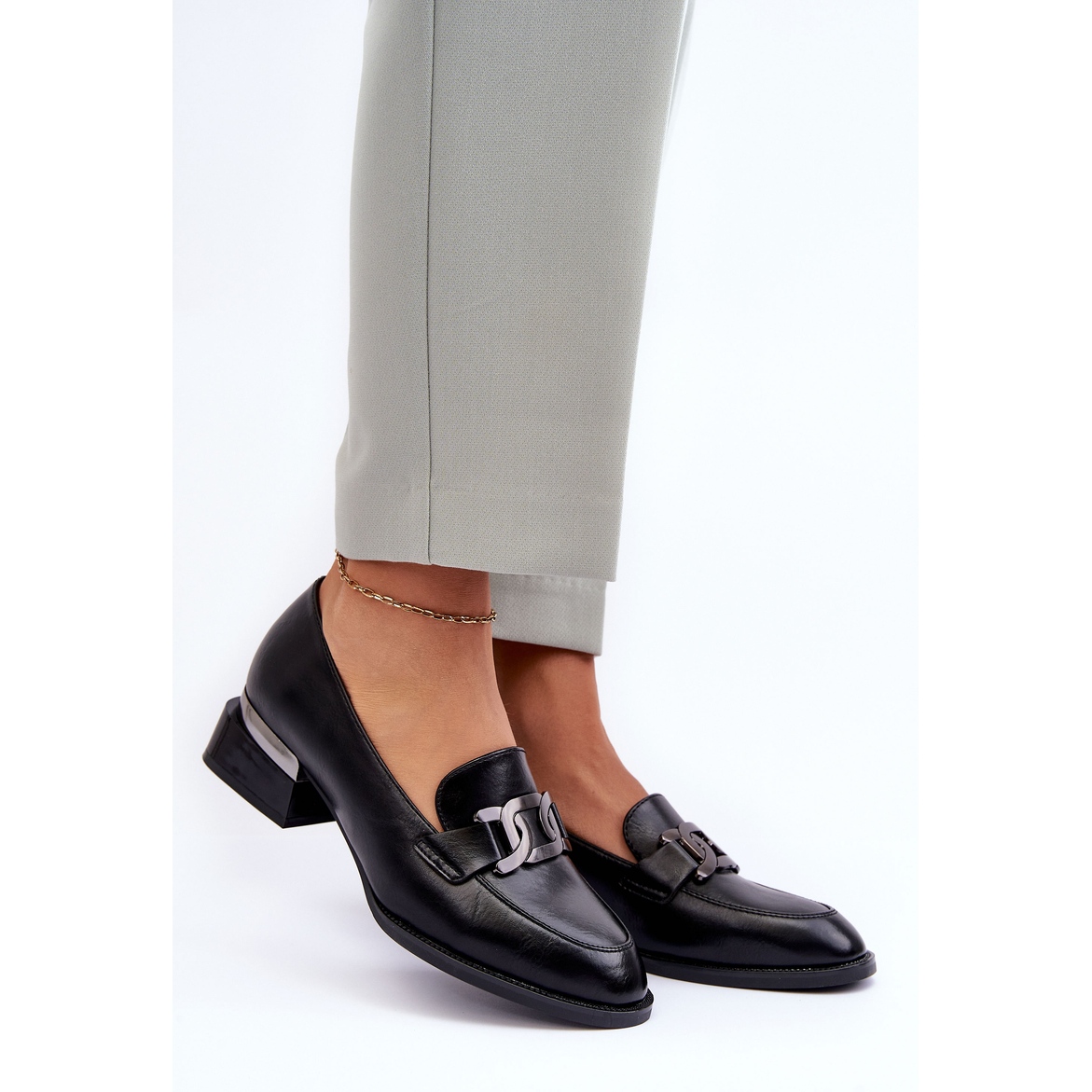 Jalkineiden ainutlaatuinen luonne johtuu varpaan hieman mantelinmuodosta ja kengän etuosaa hienovaraisesti koristavasta koristeellisesta ketjusta. Se ei ole vain houkutteleva aksentti, vaan myös korostaa koko rakenteen eleganssia.