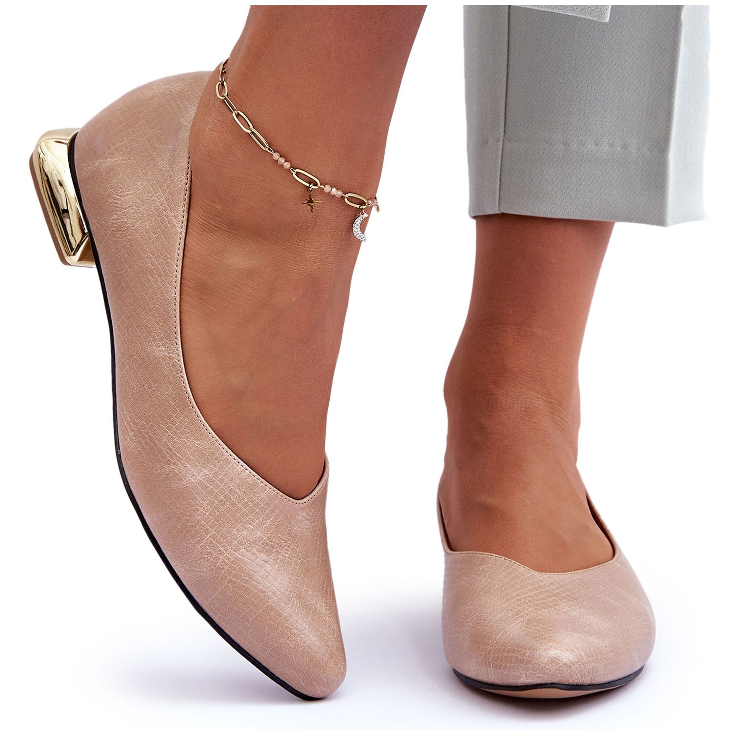 Nämä laadukkaasta ekonahasta valmistetut beigenväriset balettihuoneistot kiinnittävät varmasti hienovaraisen ja ajattoman muotoilun ystävien huomion. Hienovarainen, mantelin muotoinen nenä ei vain anna niille erityistä luonnetta, vaan myös optisesti hoikentaa jalkoja, mikä on lisäetu jokaiselle naiselle.