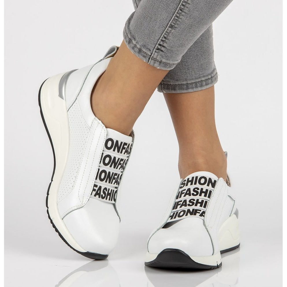 Lavan korkeus 1,5 cm ja mukava 4 cm:n kiila tekevät tästä mallista optisesti pidennettävän jalkoja lisäten eleganttia mihin tahansa figuuriin. Filippon valkoiset lenkkarit ovat slip-on, joten ne on helppo pukea ja riisua, ja minimalistisen muotoilunsa ansiosta ne on helppo yhdistää eri tyyleihin.
