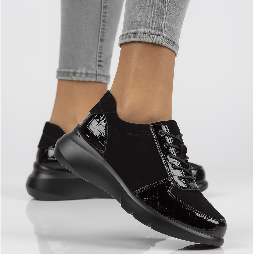 Tennareille on ominaista matala yläkorkeus (6 cm), mikä tekee niistä erittäin mukavat ja täydelliset jokapäiväiseen käyttöön. Pyöreä kärki ja nauhakiinnitys takaavat muodikkaan ulkonäön, mutta myös täydellisen istuvuuden jalkaan. Lisäksi synteettisestä materiaalista valmistettu pohja, jonka korkeus on 2 cm ja kiila, jonka korkeus on 4,5 cm, lisäävät hienovaraista eleganssia ja pidentää optisesti jalkoja.