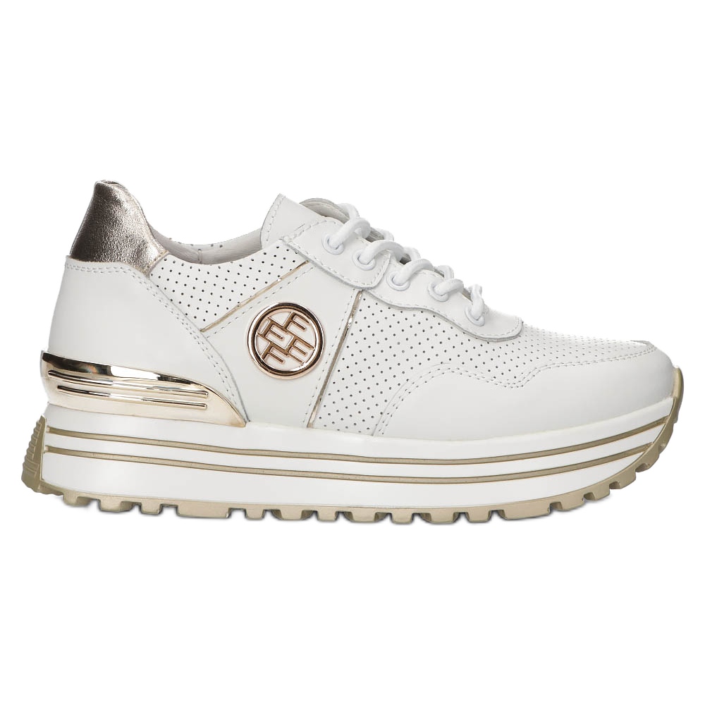 Filippo DP3538/22 WH valkoiset nahkalenkkarit ovat täydellinen valinta ihmisille, jotka etsivät tyylikkäitä ja mukavia jalkineita kevääseen ja kesään. Nämä urheilukengät erottuvat tyylikkäästä valkoisen luonnonnahan yhdistelmästä ylellisillä kultakoristeilla, mikä tekee niistä täydellisen lisäyksen erilaisiin tyyleihin.