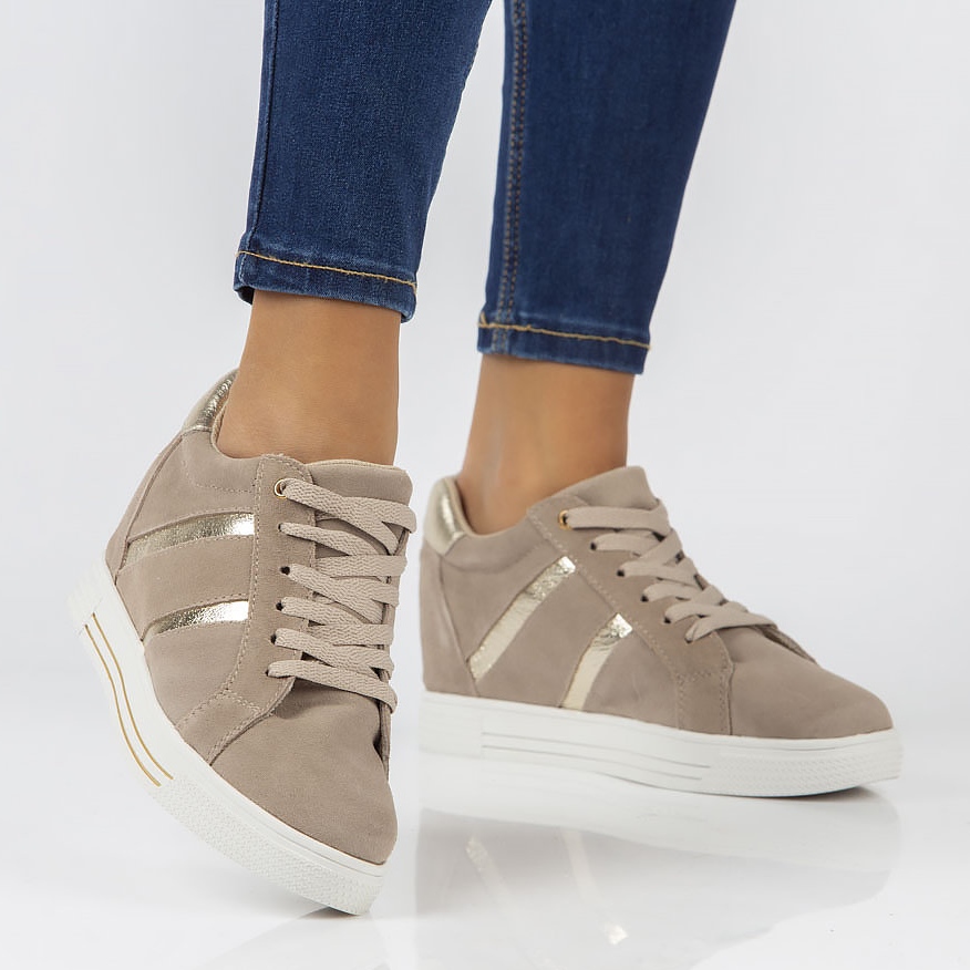 Tässä mallissa on matala, 10 cm korkea päällinen, mikä takaa käyttömukavuuden ja liikkumisvapauden. Pitsikiinnitys mahdollistaa täydellisen istuvuuden jalkaan. 2 cm korkean alustan ja piilokiilan ansiosta lenkkarit eivät vain lisää muutaman senttimetrin korkeutta, vaan myös mukavuutta kävellessä.