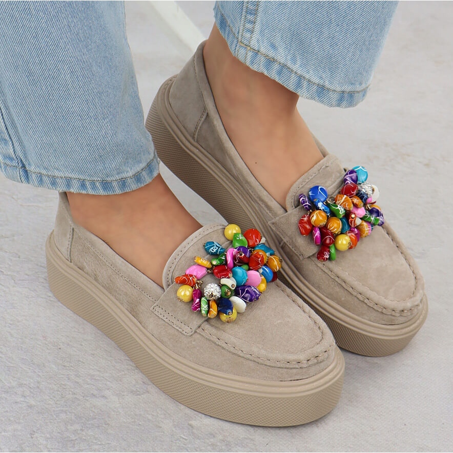 Ne erottuvat ainutlaatuisella mallilla, joka on rikastettu hienovaraisilla helmillä, mikä antaa heille hieman hehkua ja viehätysvoimaa. Täydellinen erilaisiin tyylityksiin - rento ja tyylikäs. Pehmeä nahkapohja tarjoaa mukavuutta koko päivän, mikä tekee niistä täydellisen valinnan päivittäin.