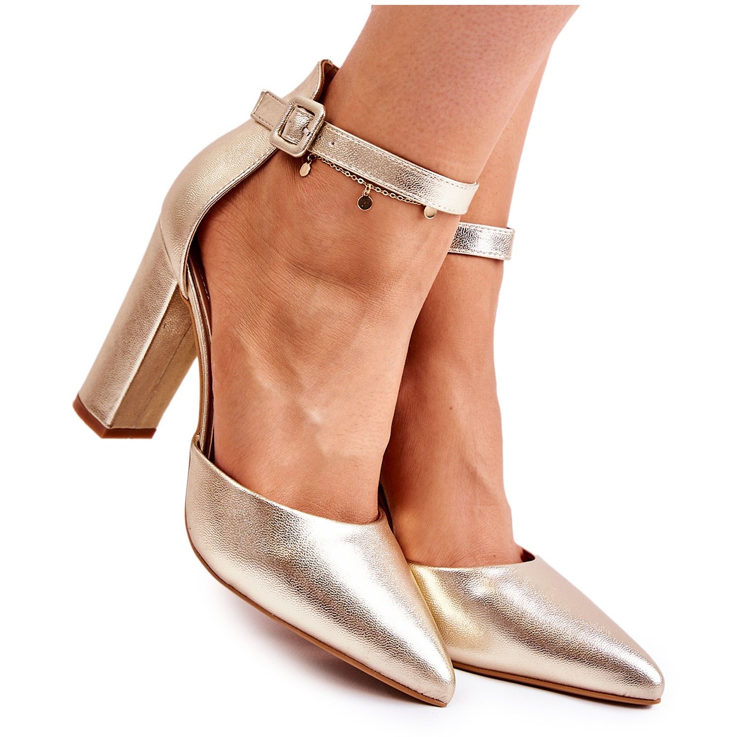 Nahkaiset korkeakorkoiset pumput Gold Salira - klassisen ja mukavuuden kultainen kiilto