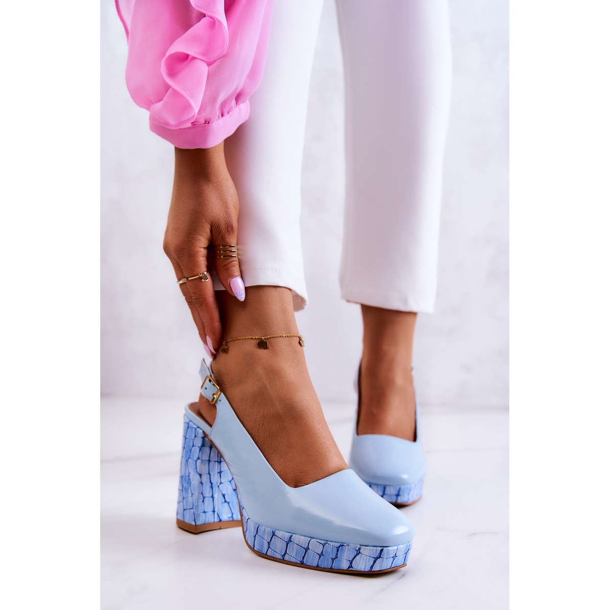 Nämä pumput erottuvat avoimesta kantapäästä ja säädettävästä hihnasta, joka on kiinnitetty soljella, mikä varmistaa paitsi esteettisyyden myös täydellisen istuvuuden jalkaan. Kengän kärki on peitetty, mikä antaa sille tyylikkään ilmeen, ja massiivinen kantatolppa (korkeus 10 cm) tarjoaa vakautta, joten saat itsevarmuutta jokaiseen askeleeseen.