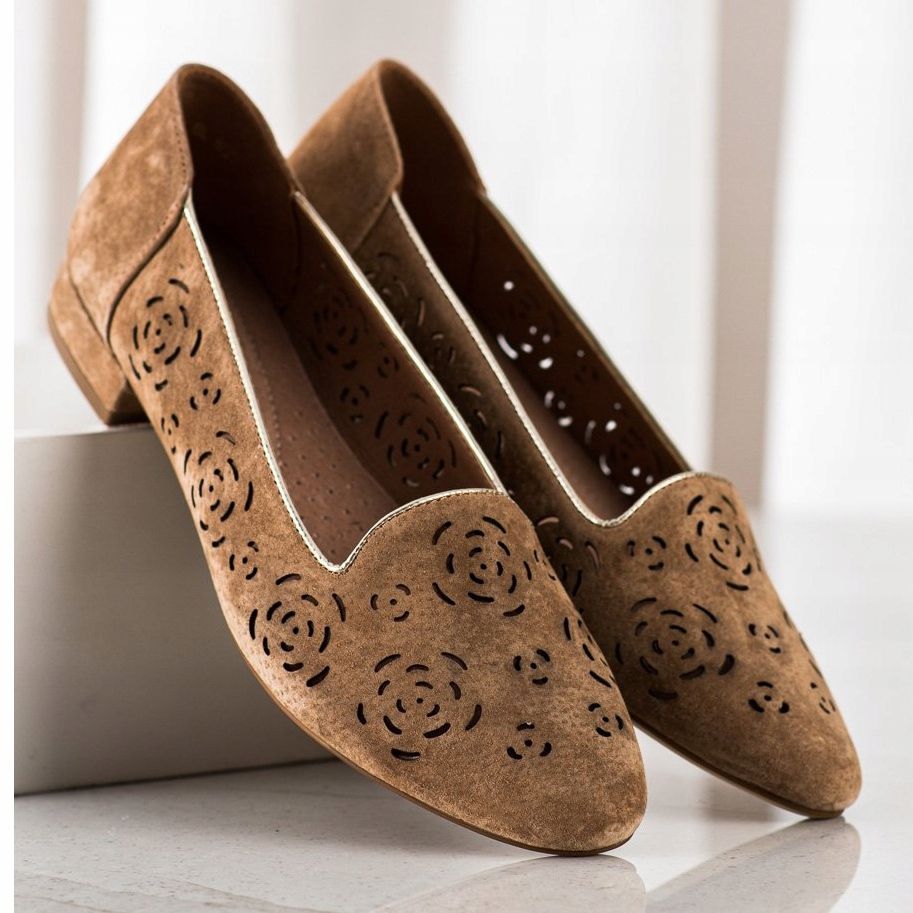Sergio Leonen nahkaiset ruusupumput ovat täydellinen valinta naisille, jotka haluavat yhdistää mukavuuden ja eleganssin. Nämä ruskeat kengät, joissa on 2 cm korkea matala kantapää, sopivat täydellisesti jokapäiväiseen käyttöön ja erilaisiin tilaisuuksiin.