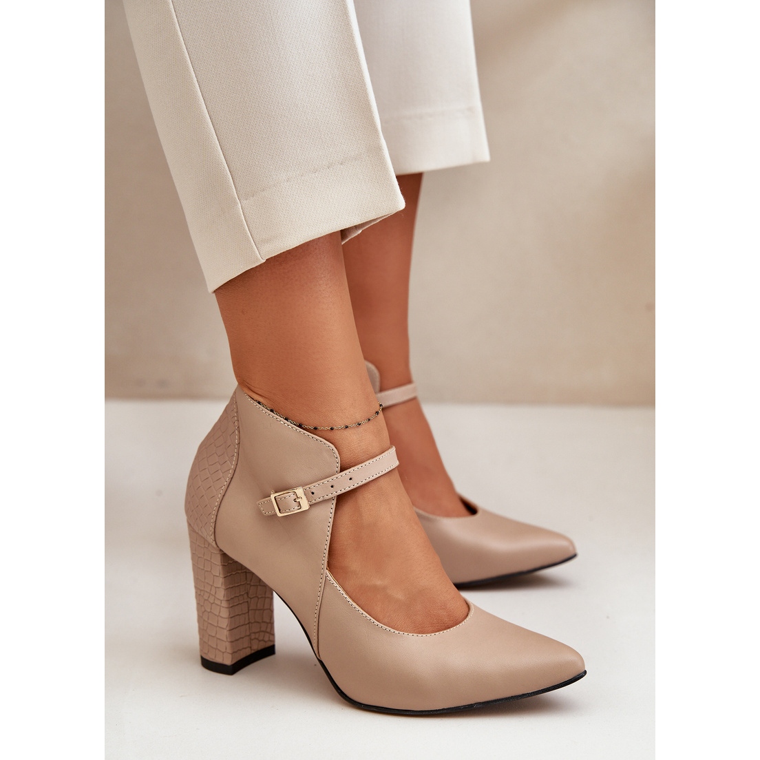 Yksityiskohdat: Nahkapumput teräväkärkisellä korkokenkolla beige Laura Messi 2832