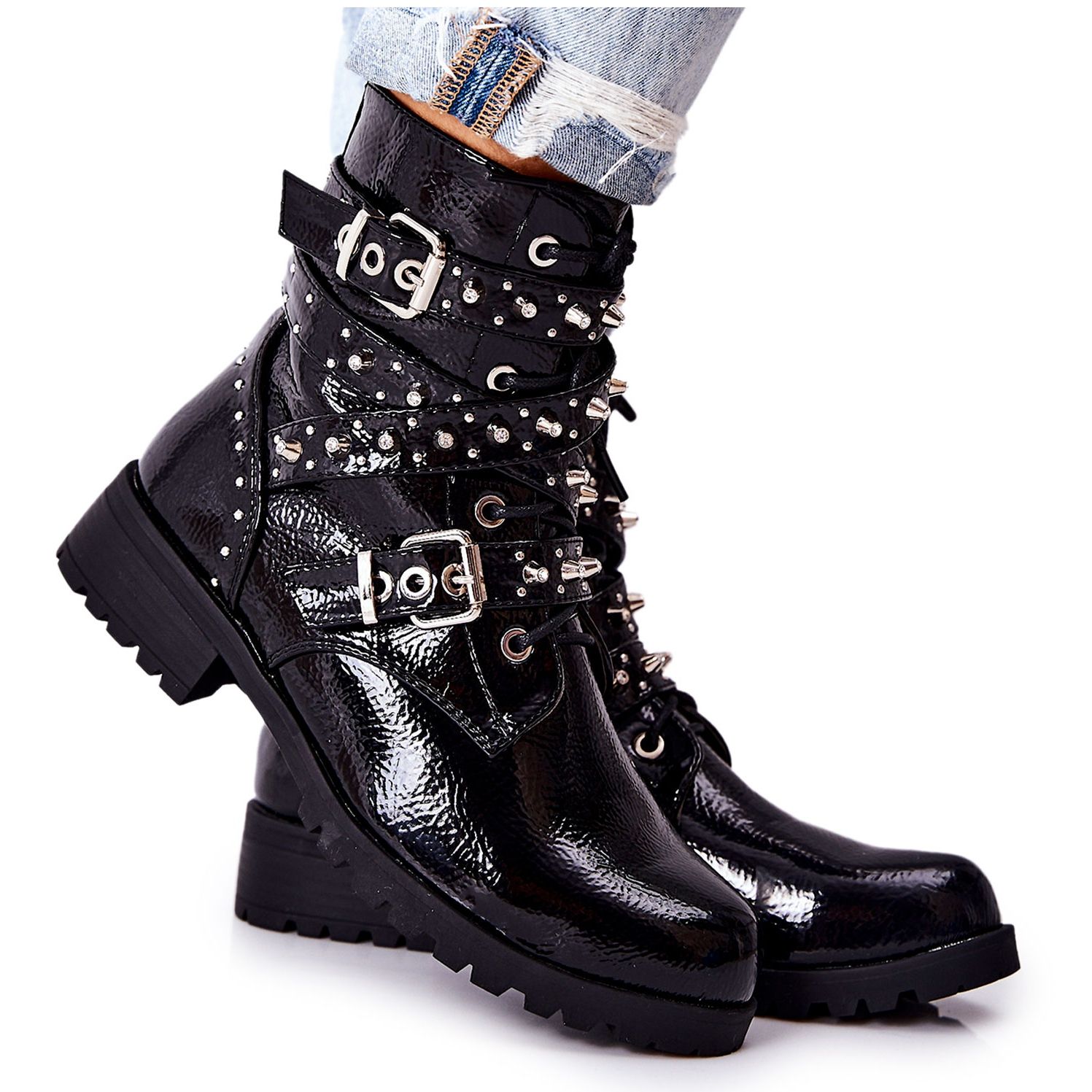 Saappaiden päällinen on koristeltu silmiinpistävällä soljella ja paljeteilla varustetut olkaimet, mikä antaa niille ainutlaatuisen luonteen. Lisäksi kengän sisäpuoli on eristetty miellyttävän tuntuisella kenkäpeitolla, joka takaa mukavuuden myös kylmimpinä päivinä.