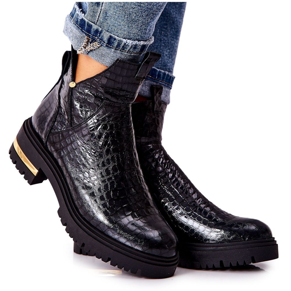 Yksityiskohdat: PA2 Nahkasaappaat lämmin krokotiilin musta Tanya