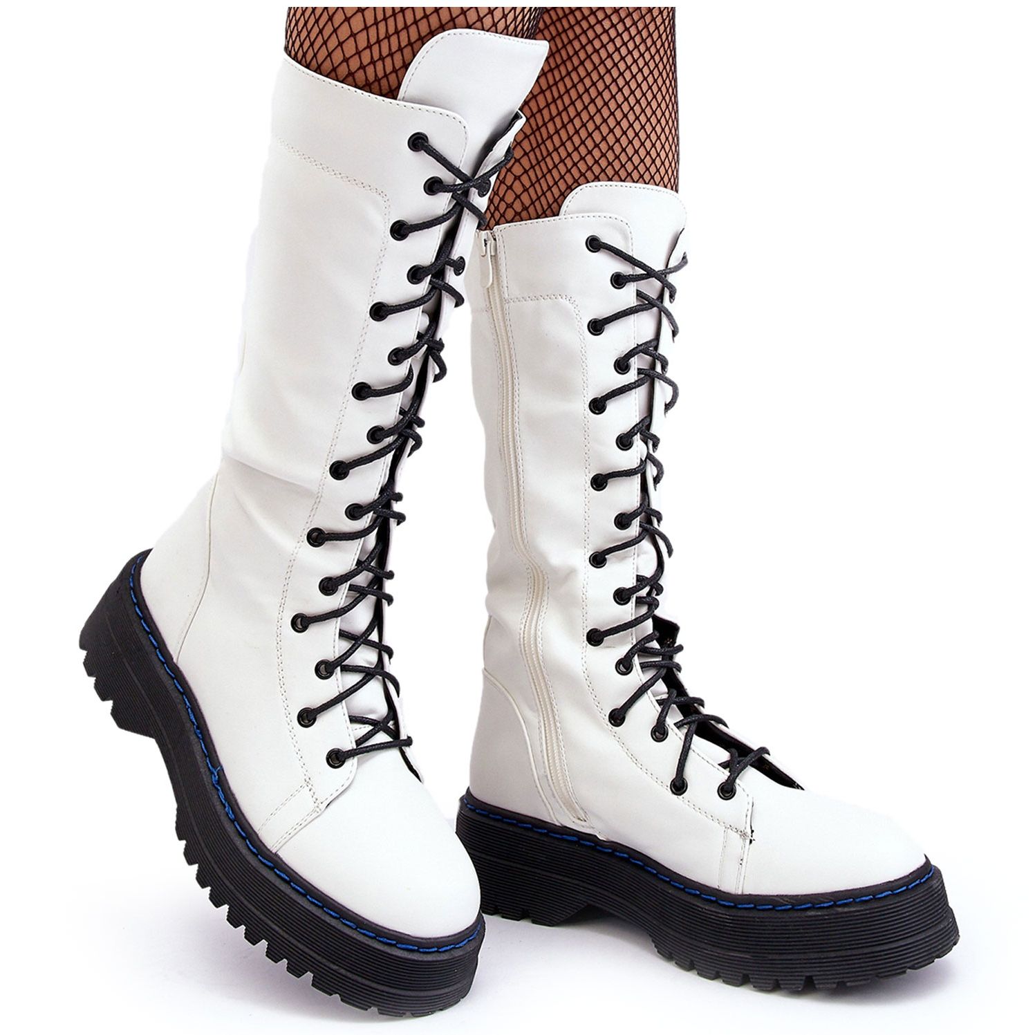 Huolellisesti laadukkaasta ekonahasta valmistetut valkoiset naisten saappaat eivät vain herätä huomiota, vaan myös takaavat käyttömukavuuden ja kestävyyden pitkäksi aikaa. Niiden tunnusomaista nauhasuunnittelua täydentää toiminnallinen vetoketju, joka kulkee koko päällisen. Tämän ansiosta saappaat on helppo pukea ja riisua, mitä erityisesti nopeutta ja mukavuutta arvostavat käyttäjät arvostavat.