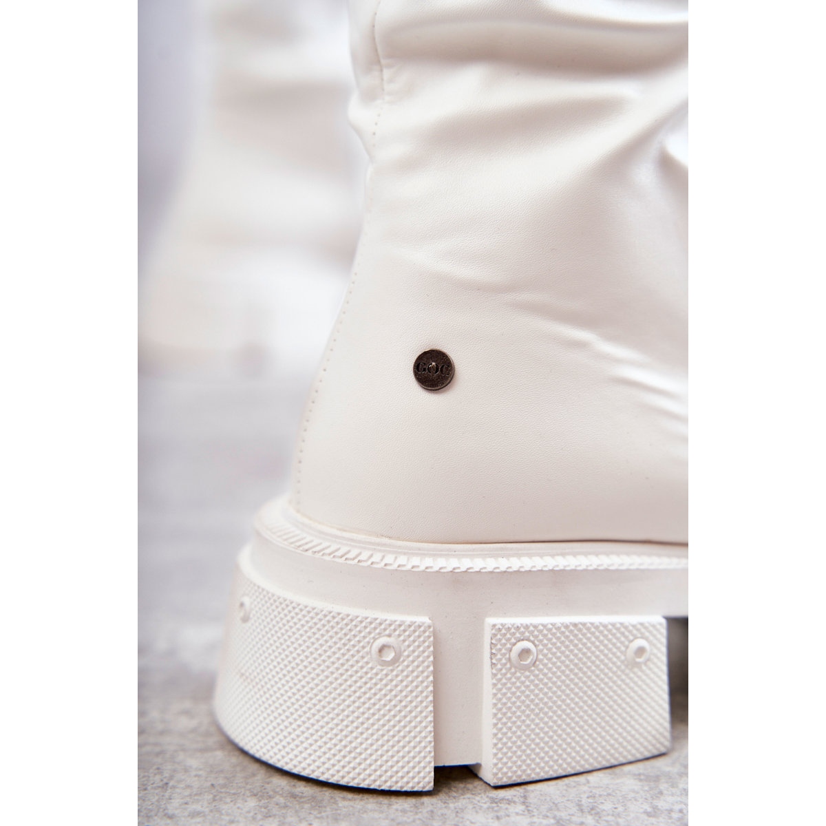Yksityiskohdat: Nahkasaappaat polven yli tasaisella kantapäällä GOE KK2N4022 valkoinen