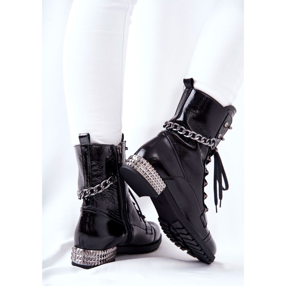 Näitä saappaita suunniteltaessa jokainen yksityiskohta on otettu huomioon. Ne on varustettu vetoketjulla ja nauhoilla, joten ne sopivat täydellisesti jalkaan. 3 cm korkea korkokenkä koristeltu nappeilla ja ylimääräinen ketju yläosassa antavat niille alkuperäisen, terävän luonteen, joka saa sinut varmasti erottumaan joukosta.