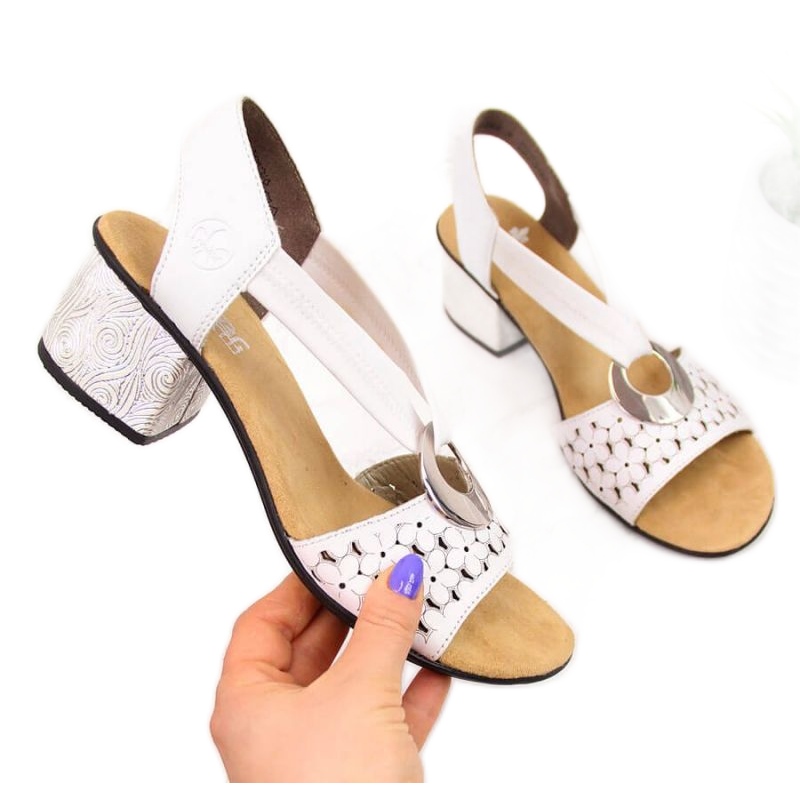 Yksityiskohdat: Nahkasandaalit kumilla Rieker W RKR433 valkoinen