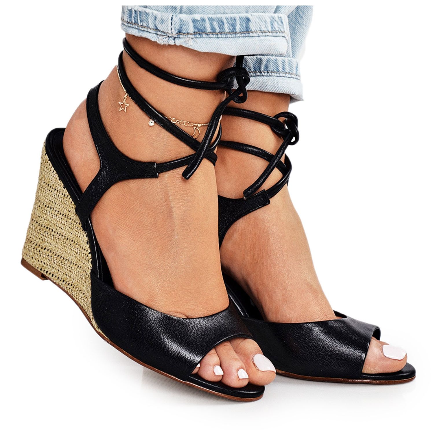 Laura Messi Nahkasandaalit punotulla kiilalla Laura Messi 1944 musta