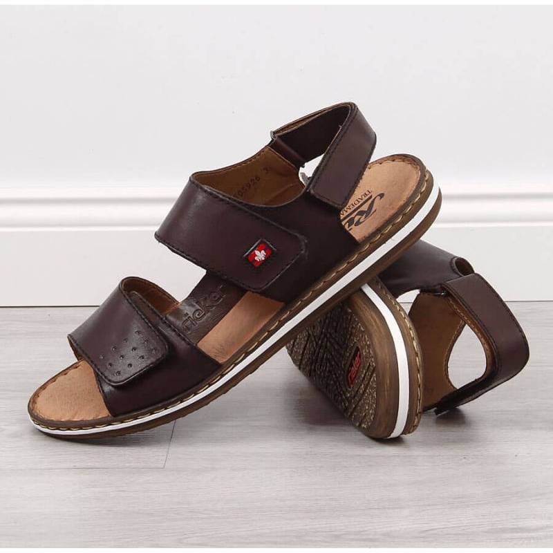 Löydä täydelliset sandaalit kesäpäiviin - nahkaiset Velcro-sandaalit Rieker M RKR529 tyylikkäässä ruskeassa värissä. Nämä mukavuutta, tyyliä ja laatua arvostaville miehille suunnitellut sandaalit ovat erinomainen valinta sekä jokapäiväiseen kävelyyn että aktiiviseen ulkoiluun.