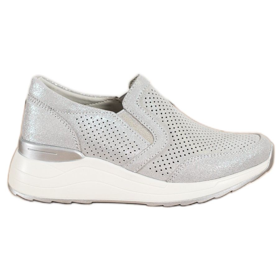 Pyöreän kärjen ja mukavan 5 cm:n kiilakorkeuden ansiosta nämä kengät sopivat täydellisesti jokapäiväiseen asuun ja korostavat samalla yksilöllisyyttäsi. Lisäetuna on metallinen glitter-aksentti, joka herättää huomion ja lisää hieman kiiltoa myös harmaina syyspäivinä.