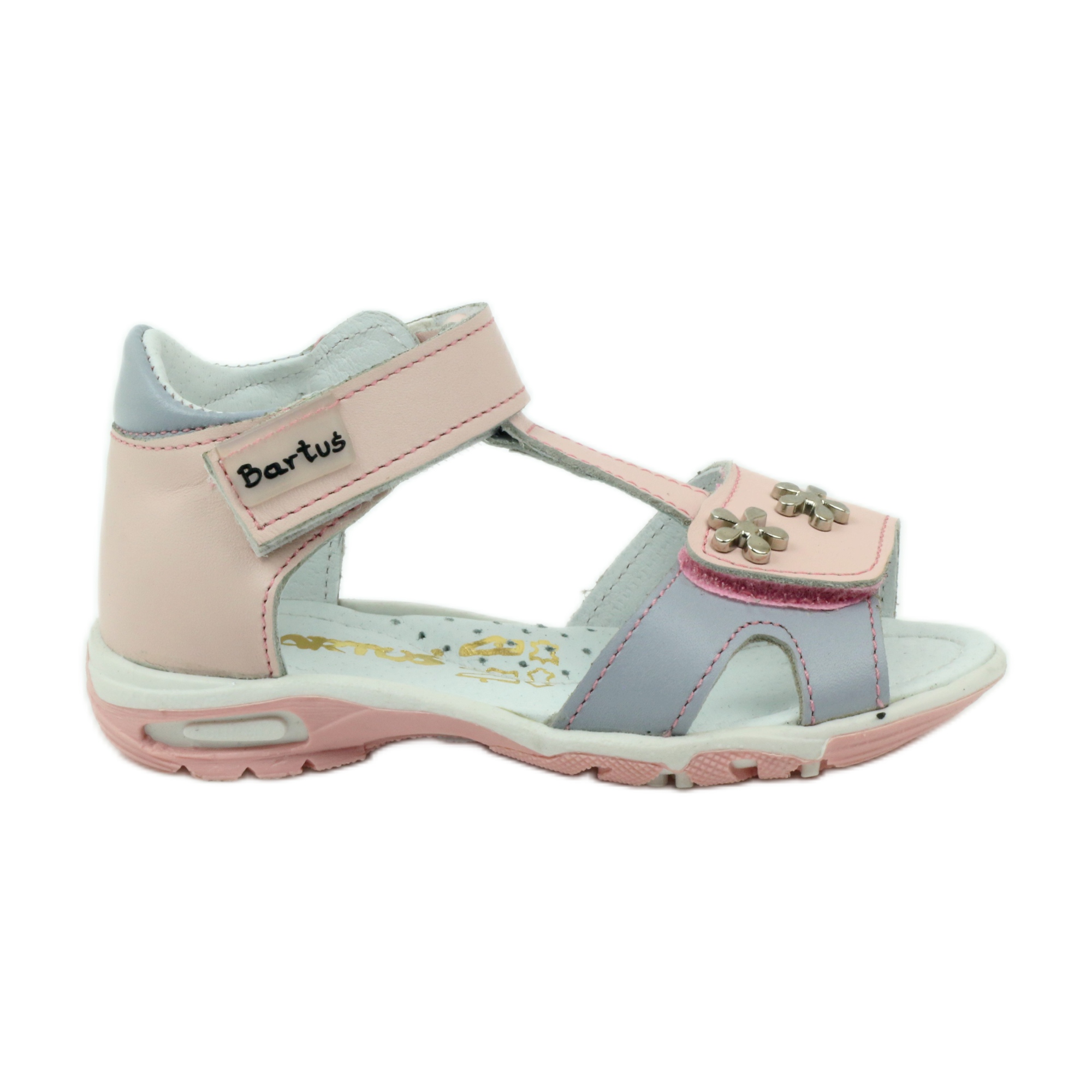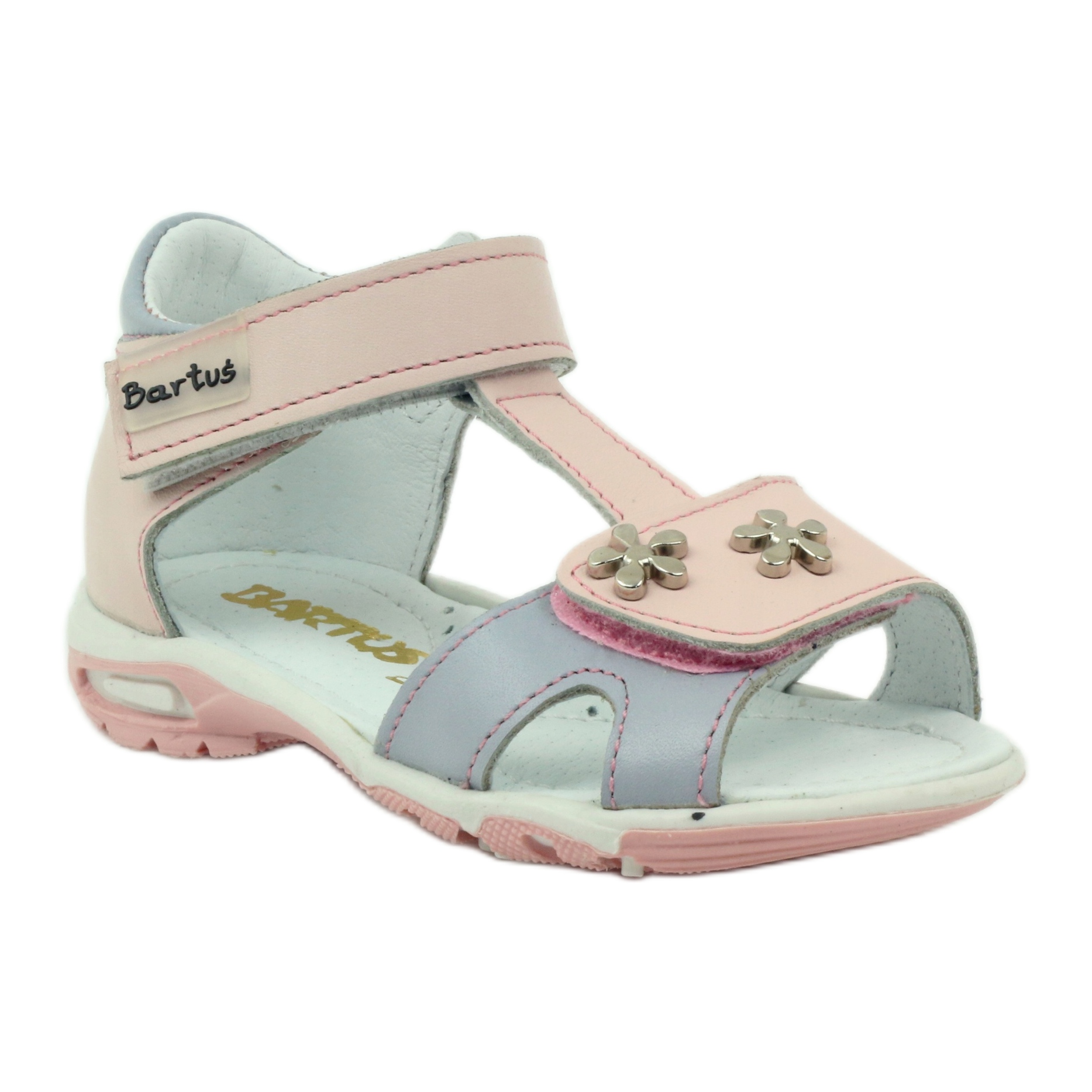 Bartuś Nahkatyttösandaalit tarranauhoille 138 vaaleanpunainen bartuś harmaa