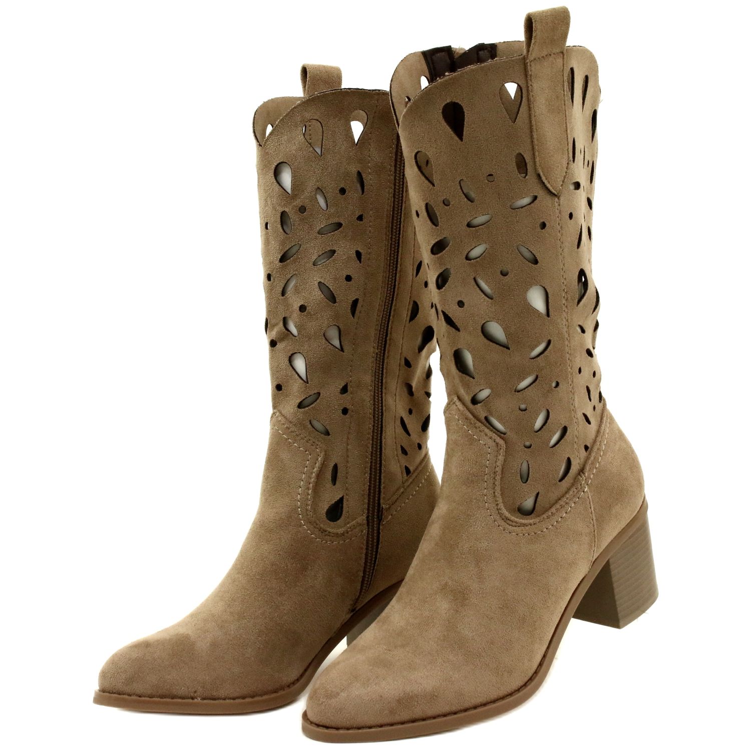 M. Daszyński MR2337-3-OpenWork Women's Suede, Beige Boots