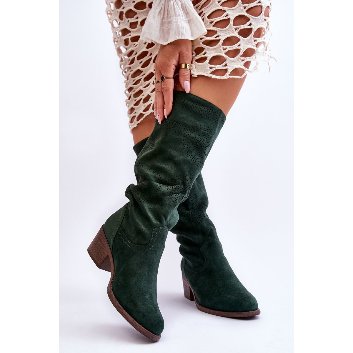Yksityiskohdat: Naisten avoimet mokkanahkaiset saappaat Vihreä Enriss