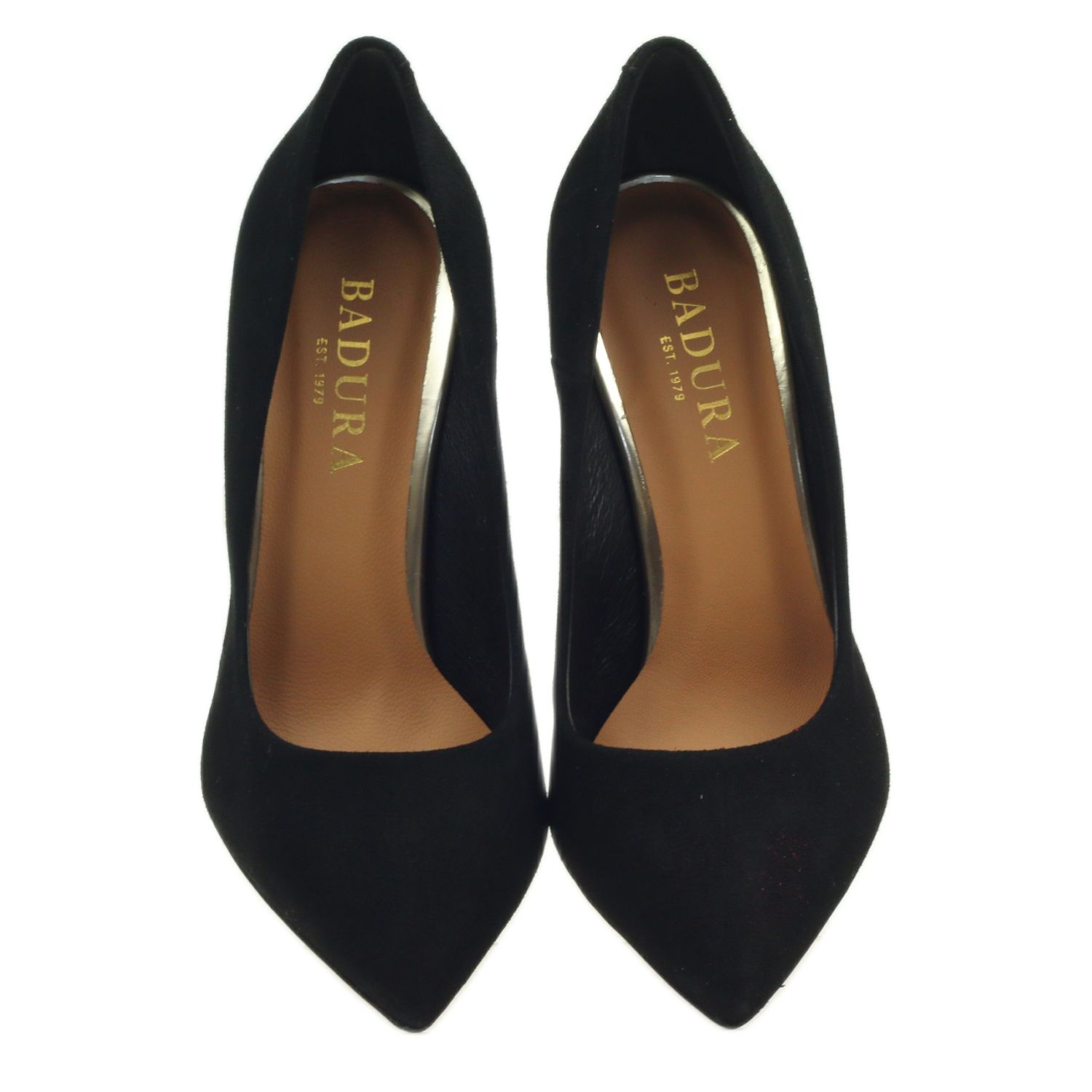 Kuvioiden puutteen vuoksi Badura 2569 -pumppujen musta väri sopii täydellisesti klassisiin trendeihin ja sopii moniin tyyleihin, niin muodollisiin kuin arkisoihinkin. Slip-on suljin tekee niistä nopean ja helpon pukemisen, mikä tekee niistä entistä käytännöllisemmän valinnan.
