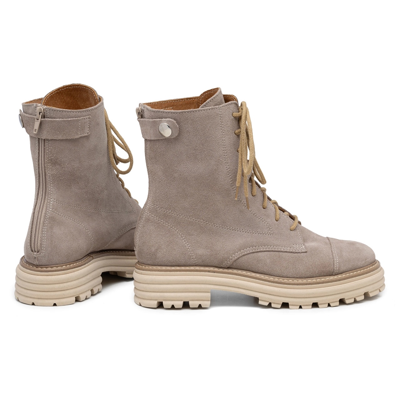 Paksu pohja antaa laukkuille modernin ja muodikkaan ilmeen, ja tasainen kantapää varmistaa vakauden jopa pitkän kulumisen aikana. Saappasten sisällä on hengittävä laminaatti ja luonnollinen nahkainen insertti, jossa on mukava vaahto, mikä lisää lisämukavuutta ja tekee jokaisesta hetkestä vietetyn hetken nautinnon.