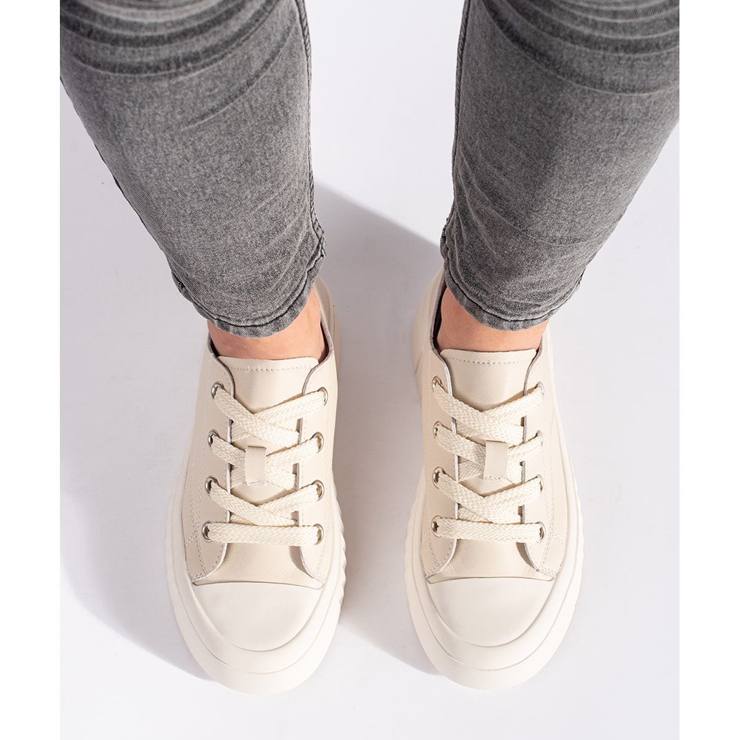 Löydä uusi versio Daily Elegancesta beige -nahkaisten naisten lenkkarien kanssa toisesta tuotemerkistä. Nämä tyylikkäät kengät yhdistävät urheilullisen hahmon rento viimeistely, joka sopii täydellisesti uusimpiin suuntauksiin. Täysin luonnon nahasta, sekä sisä- että ulkopuolelle, ne tarjoavat paitsi mukavuutta, myös kestävyyttä monien vuosien ajan.