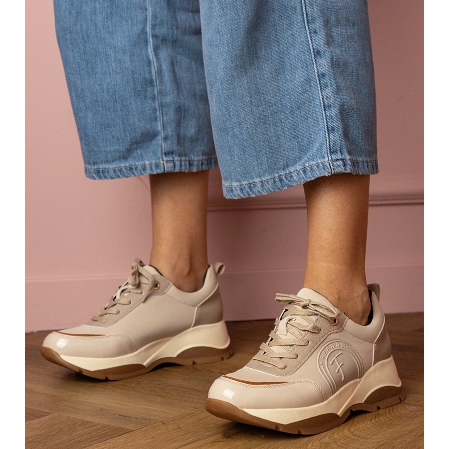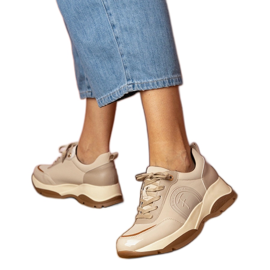 Löydä ainutlaatuinen tyyli ja mukavuus Beige Sports Sneakers -mallilla 5017. Suunniteltu modernille naiselle mielessä, he yhdistävät ekologisen lakatun ihon muodikkaisiin yksityiskohtiin, jotka kiinnittävät huomiota.
