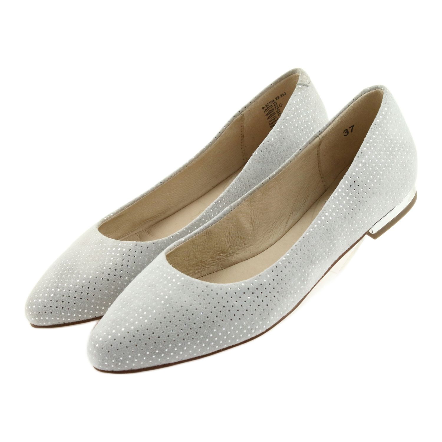 22104-mallin tärkeä etu on pehmeästä nahasta valmistettu sisäosa, joka takaa käyttömukavuuden koko päivän. Lisäksi vakaa 1,3 cm kantapää korostaa kenkien eleganssia mukavuudesta tinkimättä. Nämä balettihuoneistot ovat täydellinen esimerkki siitä, kuinka voit yhdistää tyylin jaloistasi huolehtimiseen.
