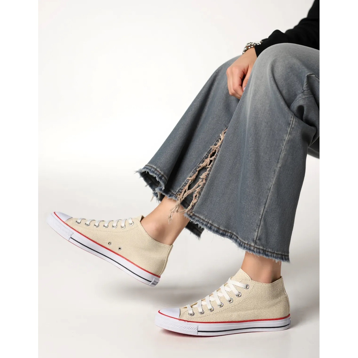 Valmistettu joustavasta kankaasta, ne eivät vain tarjoa houkuttelevaa ulkonäköä, vaan myös mukavuutta. Pyöreä nenä ja nauhoitettu lukko saavat lenkkarit mukautumaan jalkaan, joka takaa mukavuuden jopa pitkän päivän aikana.