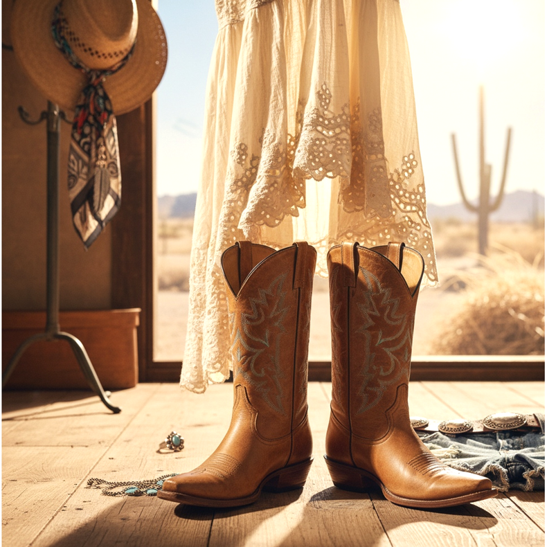 Cowboy-saappaat ovat täydelliset kengät siirtymäkauteen ja kesään. Katso, miten voit yhdistää ne ilmaviin boho-mekkoihin ja shortseihin luodaksesi muodikkaan festivaaliilmeen.