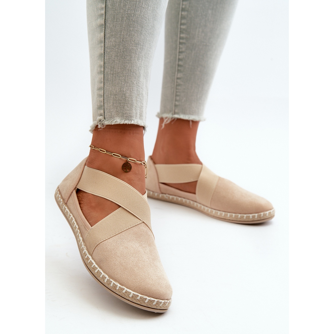 Yksityiskohdat: Naisten Eco Suede Beige Espadrilles Joustavat olkaimet Phaedrana