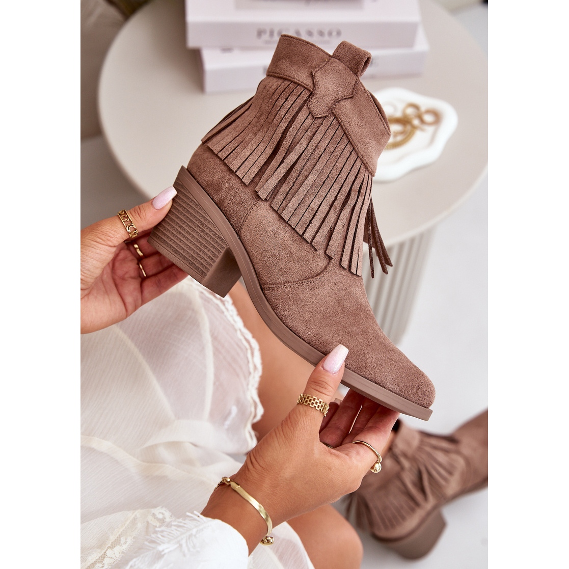 Yksityiskohdat: Naisten eko-elendian ruskeat saappaat Fringes S.Barski HY42-127 beige