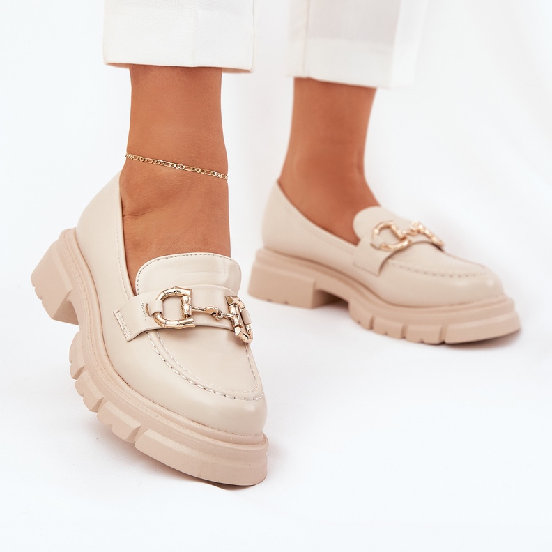 Naisten ekologinen nahkainen leipät kultaisilla yksityiskohdilla beige