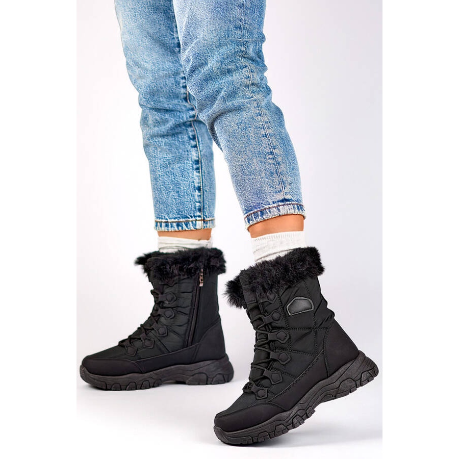 Yksityiskohdat: Naisten eristetyt lumisaappaat turkisella, musta 9093B
