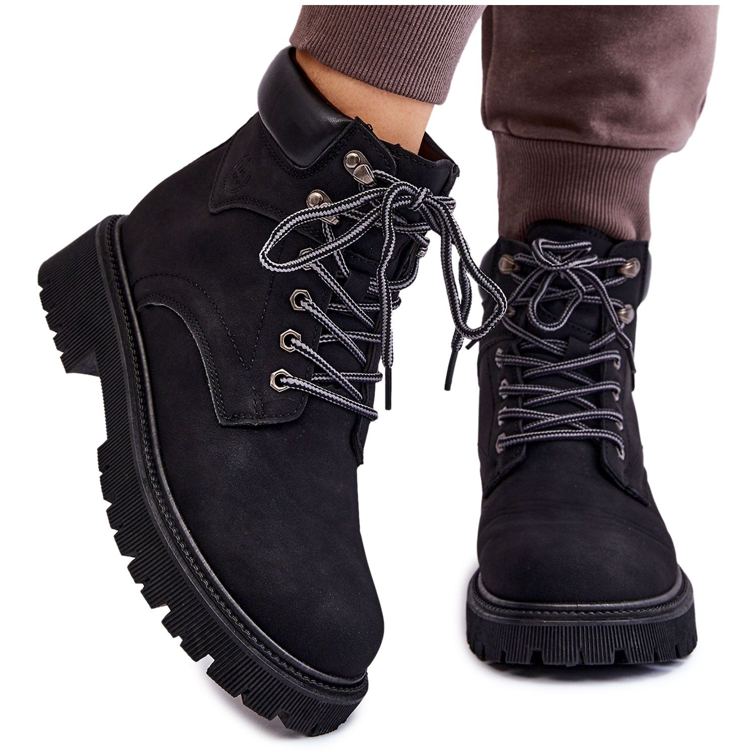 Yksityiskohdat: PG1 Naisten eristetyt saappaat mustat, puolivälissä nauhalliset Trapper-saappaat