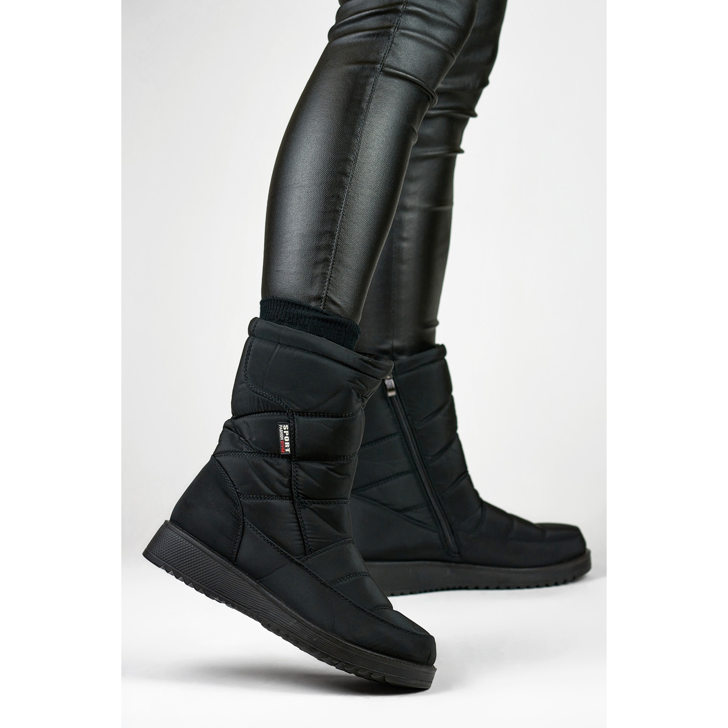 Eristetyt naisten lumilaskennat - tikattu, turkista, mustana. Tyylikkät ja käytännölliset kengät, jotka takaavat lämpöä ja mukavuutta kylminä päivinä. Klassinen, yleinen muotoilu vastaa rento- ja kaupunkimuotoja, ja matala alusta lisää muutaman senttimetrin menettämättä vakautta.