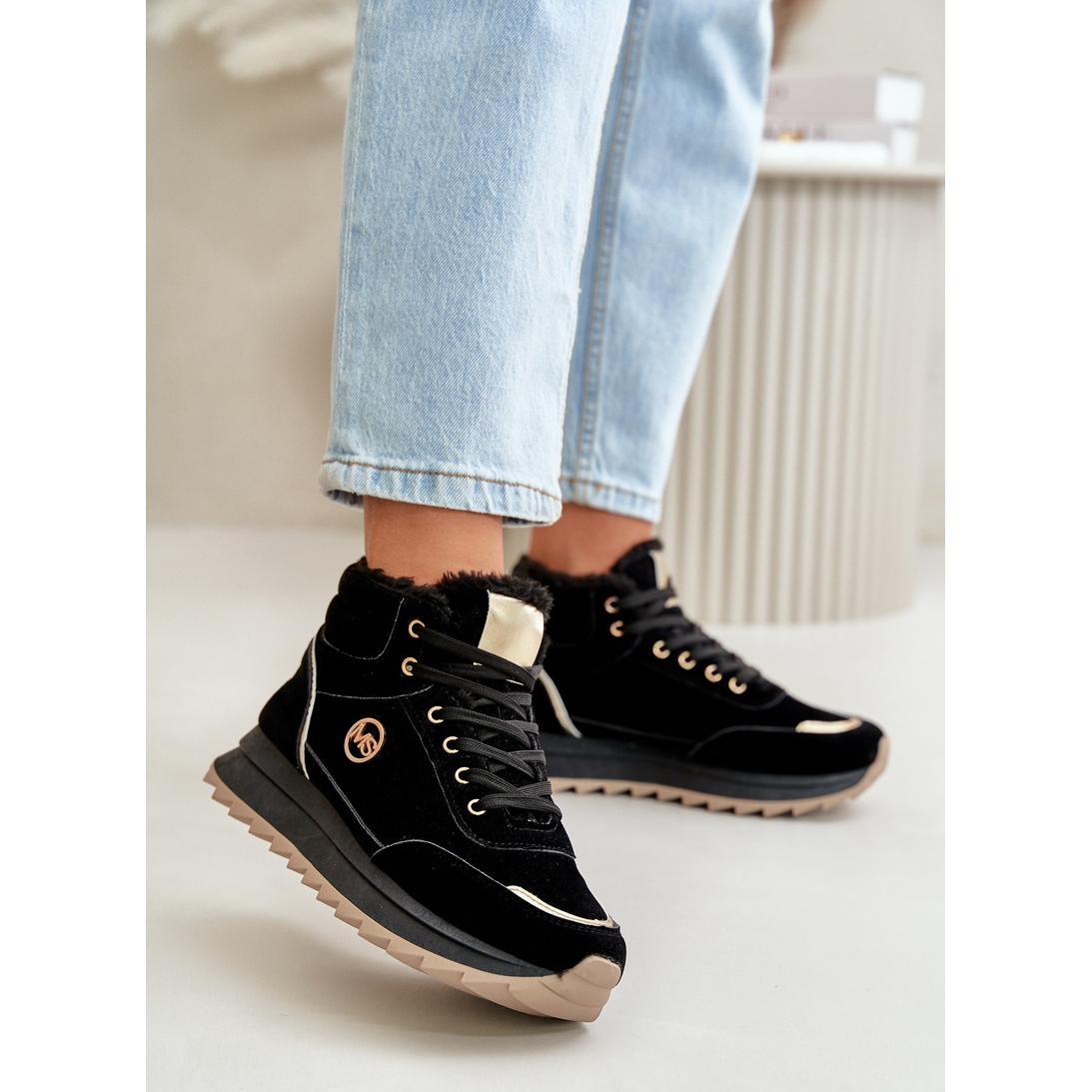 Musta ekologinen nahka -mokkanahka antaa heille modernin ilmeen ja kultaiset yksityiskohdat ylemmästä lisätyylistä. Saappaat ovat täydellisiä paitsi jokapäiväisissä tyyliissä, myös pitkien kävelyretkien aikana viileämpiä päivinä.