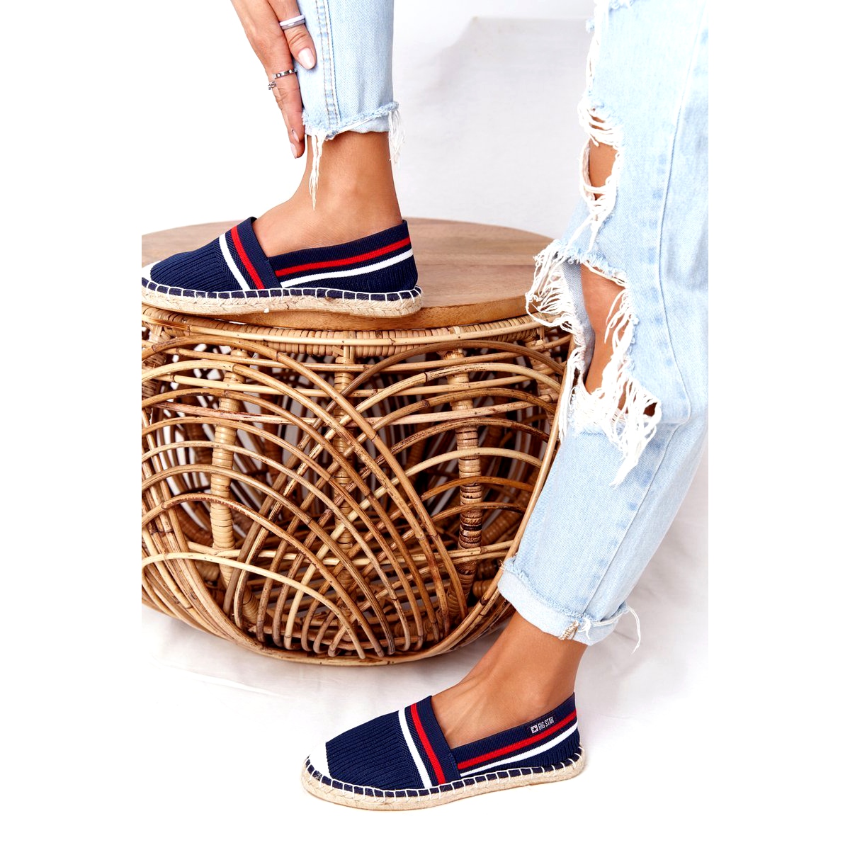 Klassinen espadrilles Puolan Big Star -brändistä, joka yhdistää mukavuuden ajatonta tyyliä. HH274483-malli erotetaan pehmeästä, materiaalista yläosasta, jossa on merivoimien valkoiset raidat ja punos beige-pohjan ympärillä, mikä antaa kengille hieman Välimeren luonteen. Lisätyn rakenteen ja pyöreiden työkalujen ansiosta asettaminen on nopeaa ja mukavaa - täydellistä joka päivä.