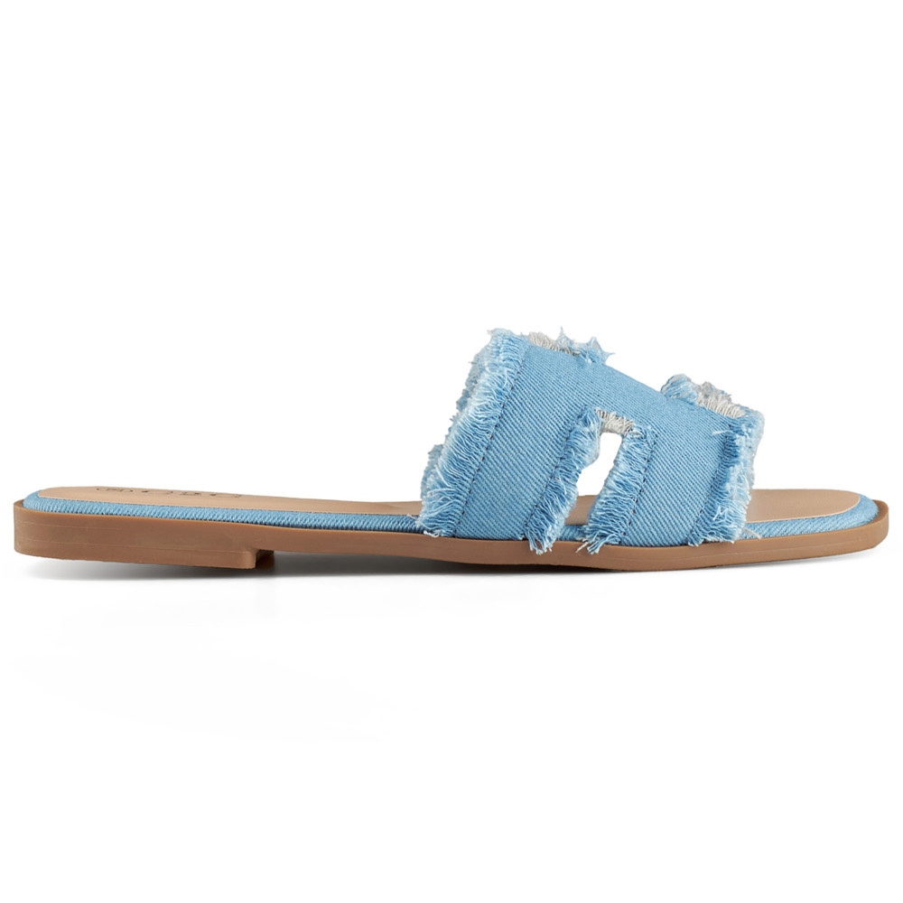 Yksityiskohdat: Naisten farkkuvarvastossut tasaisella pohjalla sininen